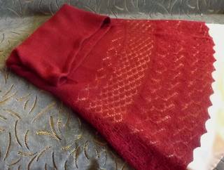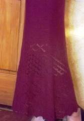 White Angel Шелк Суматра (3000м,100г) в 5 нитей, цвет белая глина. Расход 105 г. Размеры по нижнему краю 300 см, в самом широком месте 55 ми. Использован бисер №6 под жемчуг. |