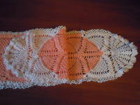 Шарф связан из Angora RAM, 60% акрил, 40% мохер. 100 гр - 500 м. Ушел 1 моток персикового цвета и немного белого. Крючок №3.