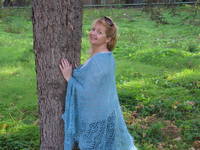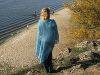 Алла, шаль действительно огромная, тяжело было ее блокировать.Зато можно укутаться основательно,она теплая.В составе пряжи заявлен мохер,меринос и шелк.Посмотрим,какая она будет в носке.