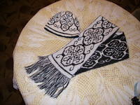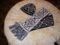 Шарф 23х190 + кисти по 18 см. Спицы 2,5мм. Черной от мотка 100 г осталось метров 8, белой 17-20метров. Шапочка на 56 размер. Спицы 3,0мм. Ушло чуть больше 1/3 моточков. После стирки чуть вытянулось, но все в пределах нормы. На ощупь очень приятно. Но вязать двусторонние платье теперь вряд ли возьмусь, уж лучше с протяжками. Очень рада что начала с шарфа, а не платья, это был бы очередной долговяз или бы вообще ... |