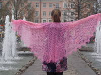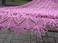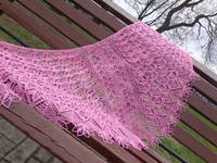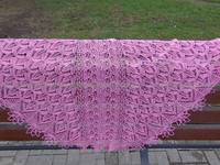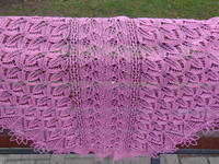 Шаль мне покорилась не с первой петельки, и даже не с первой схемы...но зато после всех "разногласий" мы нашли общий язык и получилась прекрасная розовая красавица!!!!!!!!!!!!!!!