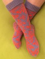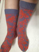 А с Кауни у меня наоборот получалось верх носочка сел хорошо по ножке, а ближе к пятке образовалась свобода. Так как первая попытка была на 2.5 и носок оказался очень свободным, я уже вязала второй раз на 2.0. Но опять носок не прилегал в районе лодыжки, а переходить на 1.5. чтобы заузить, посчитала не корректным при такой толщине пряжи. Может не надо было бояться и при стирке это всё бы улеглось, но я не рискнула. Мне хотелось высокий носочек, чтобы узор больше раскрылся. Сейчас я бы попробовала с супервош однотонного и секционки. Я пробовала и этот вариант, но мало провязала .Решила- будет часто меняться цвет и потеряются бабочки. А зря. Пёстрые бабочки на светлом фоне были бы наряднее. |