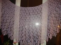 "Орхидея". Пряжа пехорка "Элитная" (415 м/50г). Бисер №6. Спицы №3.75. Размеры: по верхнему краю: 90 см, ширина 40 см, по нижнему краю 270 см. Проект на Ravelry |