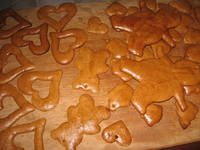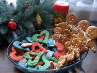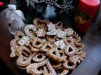Рождественские пряники 2яйца 0,5 коф. ложки корицы Тёртая лимонная цедра 500г муки 120г мёда (приблизительно 3 большие ст ложки) 190г сах. пудры 125г маргарина 1пачка пряничных пряностей 1ч ложка соды Тесто замешивала в комбайне. Маргарин и мёд предварительно растопила. Соду погасила в меду. Замесим тесто, оставим 1час отдыхать на холоде, раскатаем толщиной 5-10мм. Печём на смазанном противне или бумаге для выпечки 5 минут (у меня время выпечки получилось подольше). После выпечки ещё горячие смазываем яйцом, взболтанным с 1ст ложкой крепкого чёрного кофе. Даём остыть. Украшаем. Эти пряники мягкие сразу и ещё длительное время.